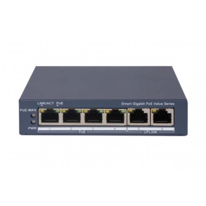 L2, 4 гигабитных порта RJ45 PoE, 2 uplink порта 1000М RJ45, 802.3af/at, бюджет мощности PoE 45 Вт, облачное управление, VLAN, STP/RSTP loop prefention, PoE watchdog, поддержка режима передачи до 300 м (10 Мбит/с, CAT6), защита от перенапряжения 6 кВ, металл, настольный/настенный монтаж
