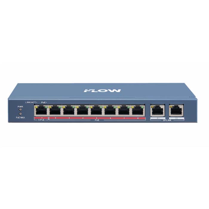 L2, 8 портов 10/100M RJ45 PoE, 2 uplink порта 1000М RJ45, 802.3af/at/bt, 1 порт поддерживает Hi-PoE 90 Вт, бюджет мощности PoE 110 Вт, поддержка режима передачи до 300 м (10 Мбит/с, CAT6), VIP-порт, защита от перенапряжения 6 кВ, металл, настольный/настенный монтаж