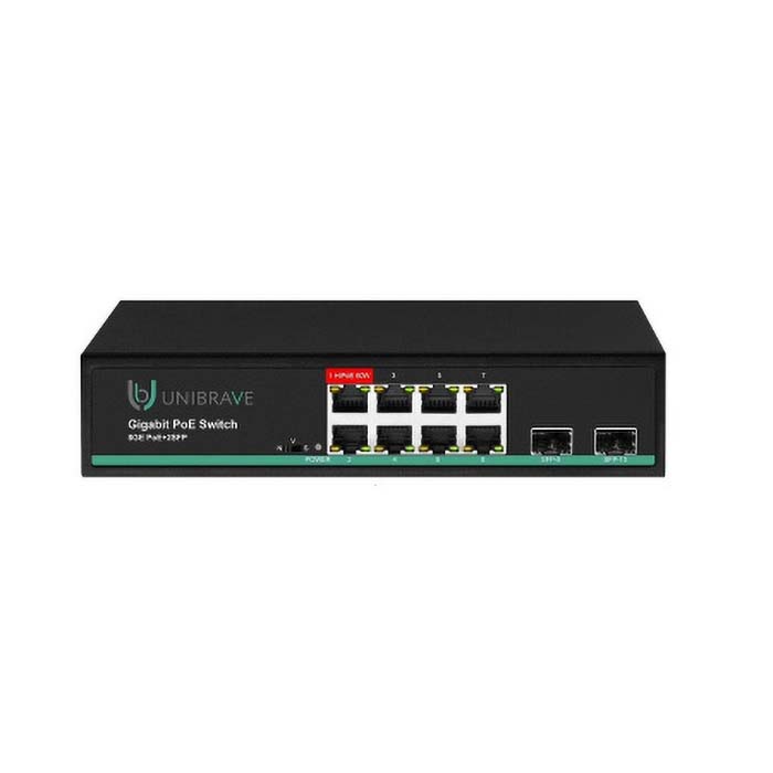 Unibrave UB-SW-8G2SFP-150 Pro Гигабитный неуправляемый коммутатор Unibrave с поддержкой PoE на 8 портов, 2SFP-портами (150 Вт)